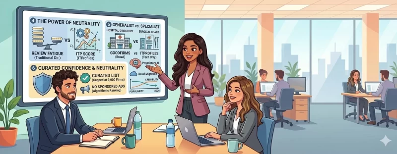 ITProfiles has positioned itself as the "Anti-Directory." By capping their list at specialists and focusing on a data-driven ITP Score, they offer something that GoodFirms simply can't: Curated Confidence.